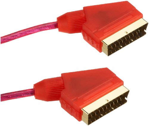 #- Mâle - mâle- 21 broches connectées- Connecteurs plaqués or- Compatible RVB et S-Vidéo- Couleur : rouge transparent- Longueur : 1,5 m